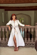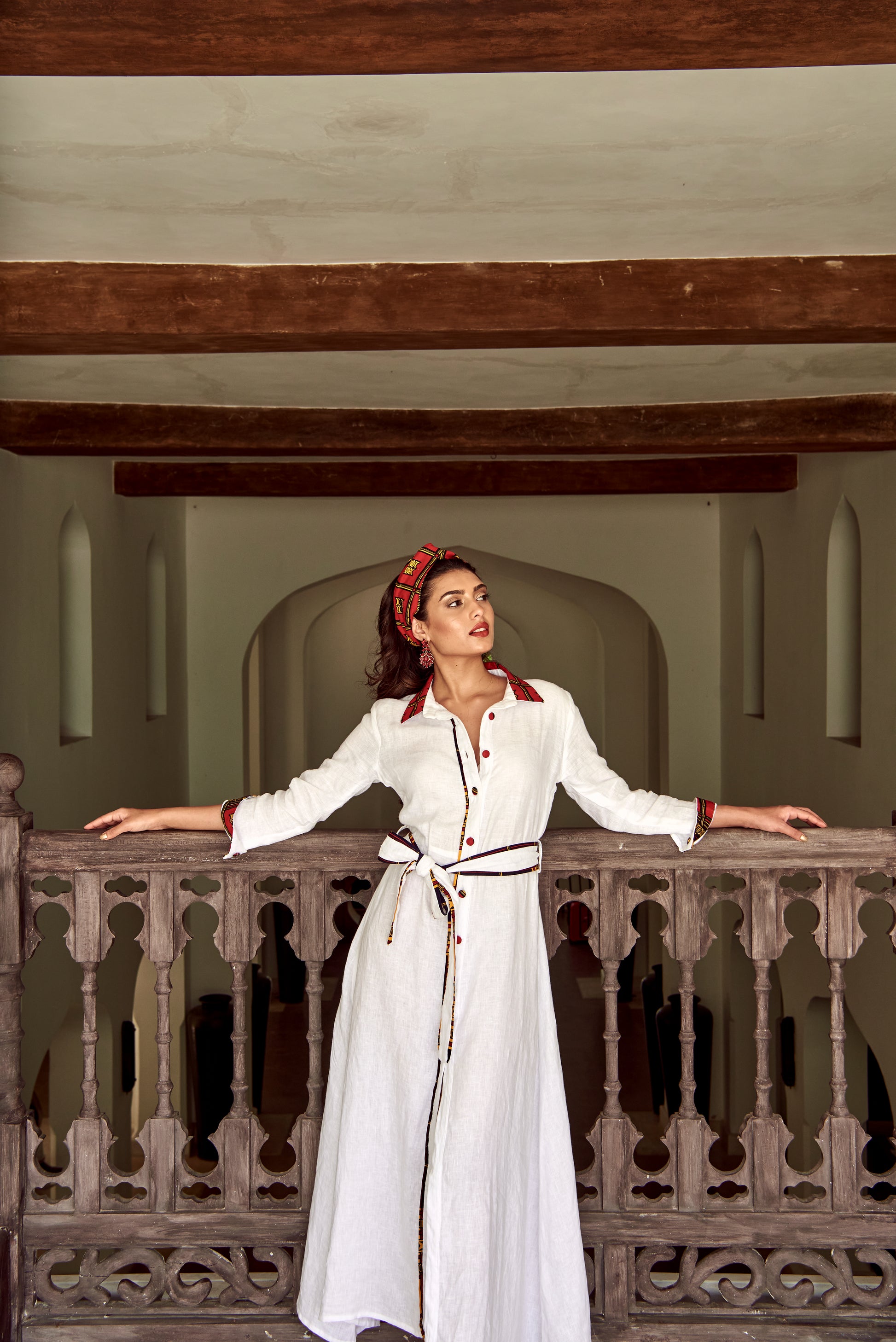 One of our first and still most popular designs, our Challa dress is a fan favourite as it’s so versatile – great for work, dinner or the beach. The ankle length shirt dress buttons down the front with a slight slit to add a bit of spice to the modest look. The dress doubles as a duster coat when worn with a pair of jeans and a top.