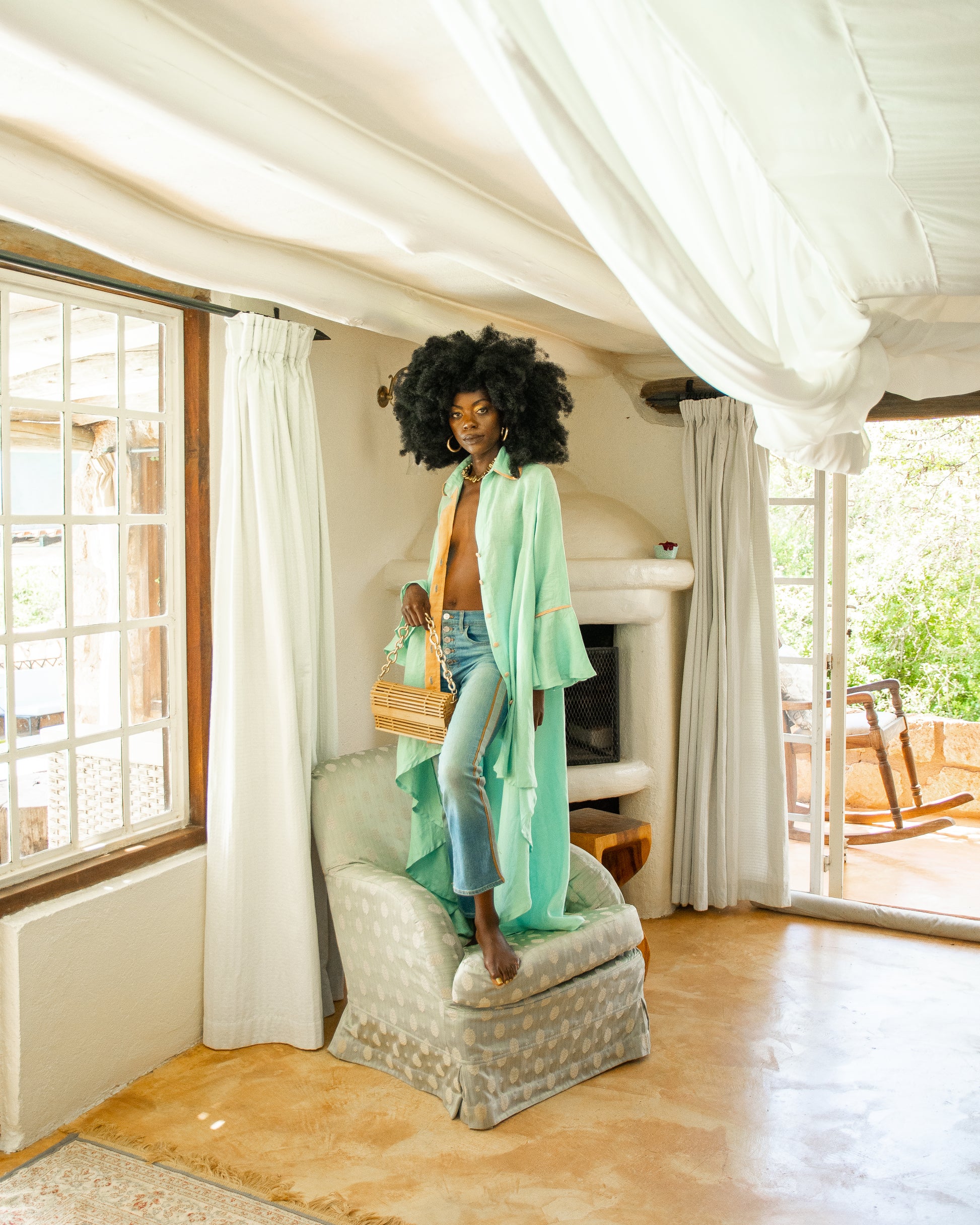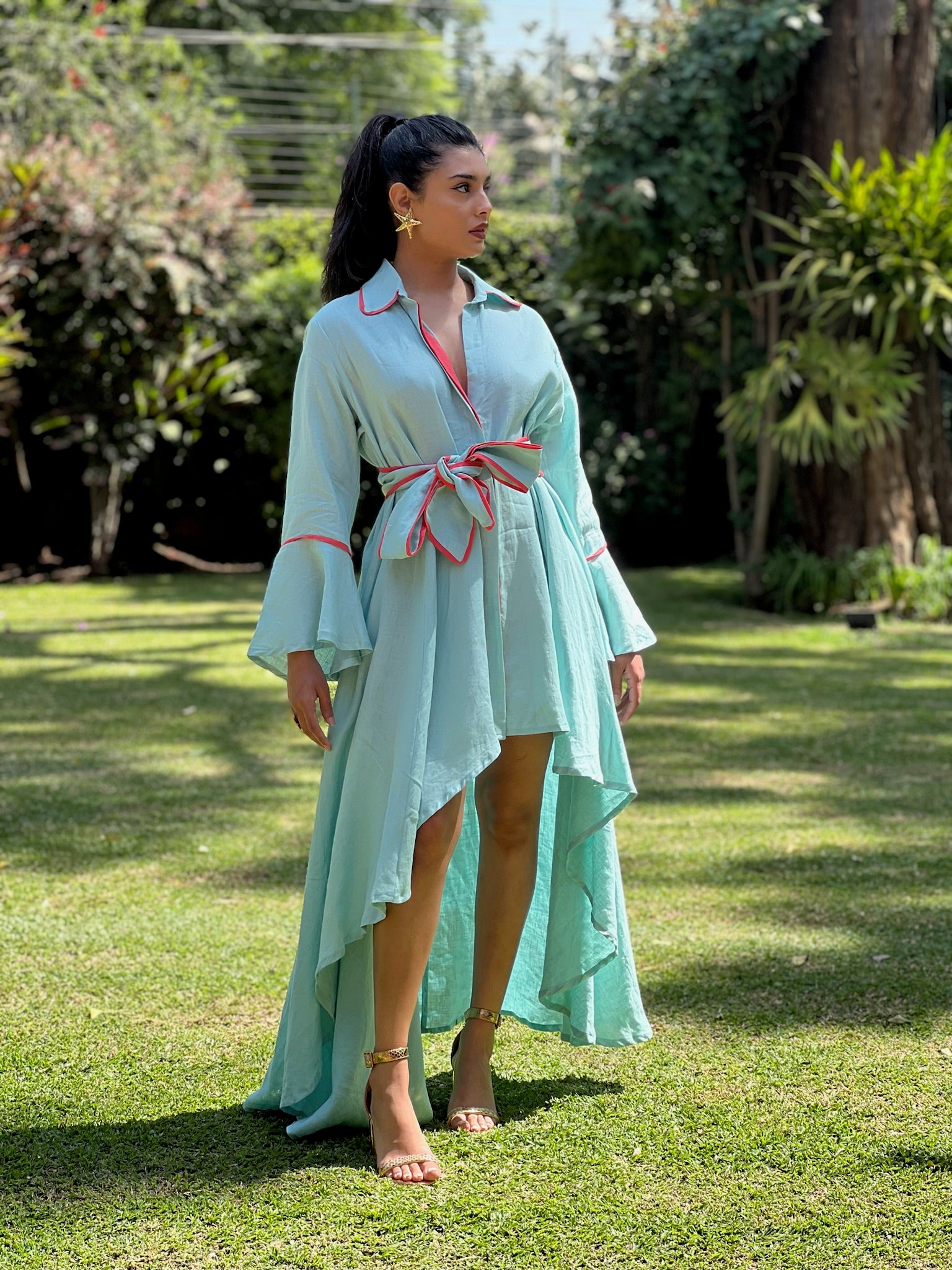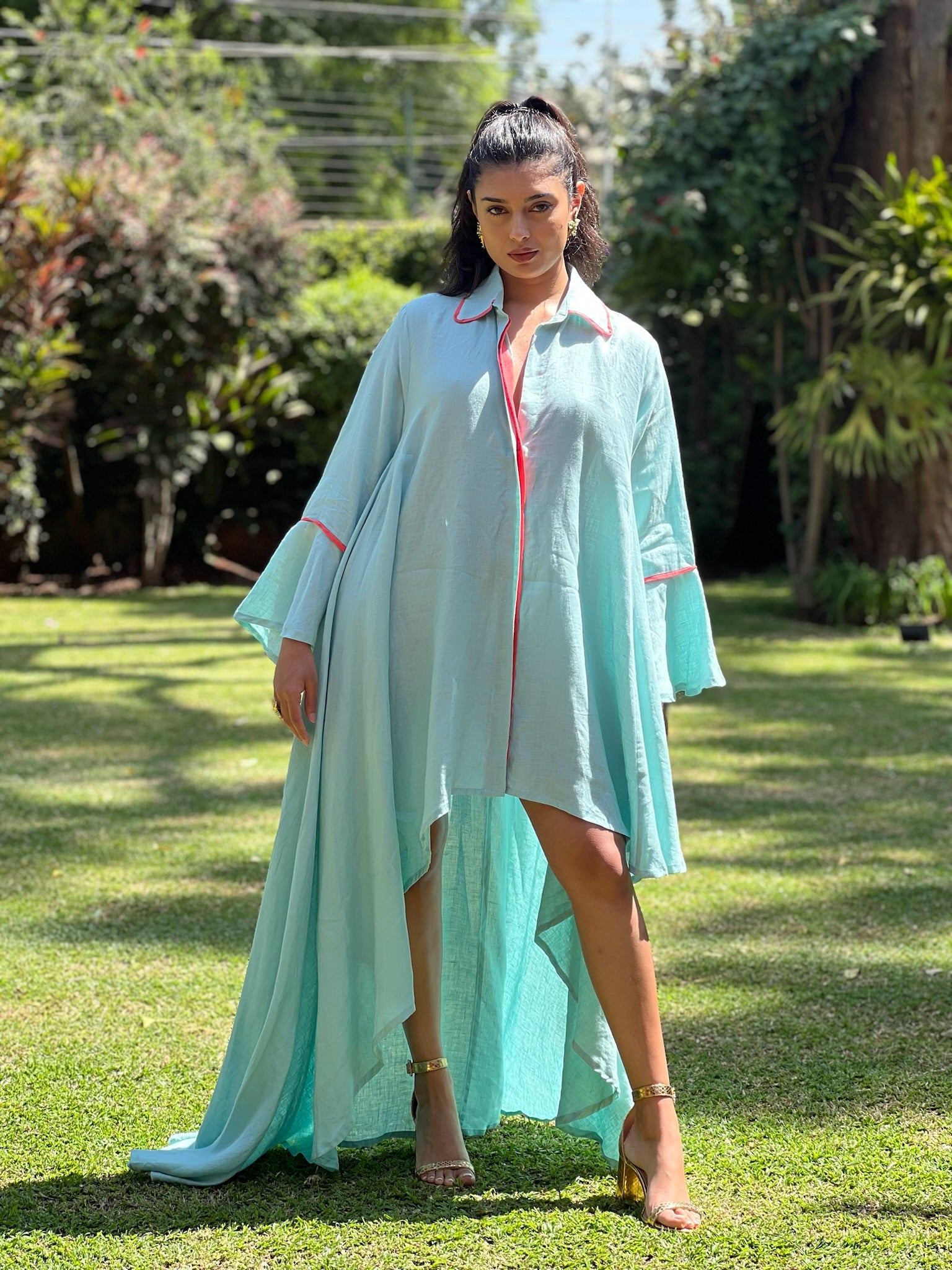 Another showstopper in our midst is our Karura shirt. Its high low cut gives a waterfall type flow and the bell sleeves give it an extra bit of glamour as we can never have too much. The thing we love most about this number is that it can be worn in so many ways we often lose count.