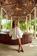 Our Kengele dress is a beach favourite. The off the shoulder look makes for a flattering neckline and the bell sleeves add give it an extra vibe which we always love. The dress doubles up as a top when tucked into jeans because we love a 2 in 1.