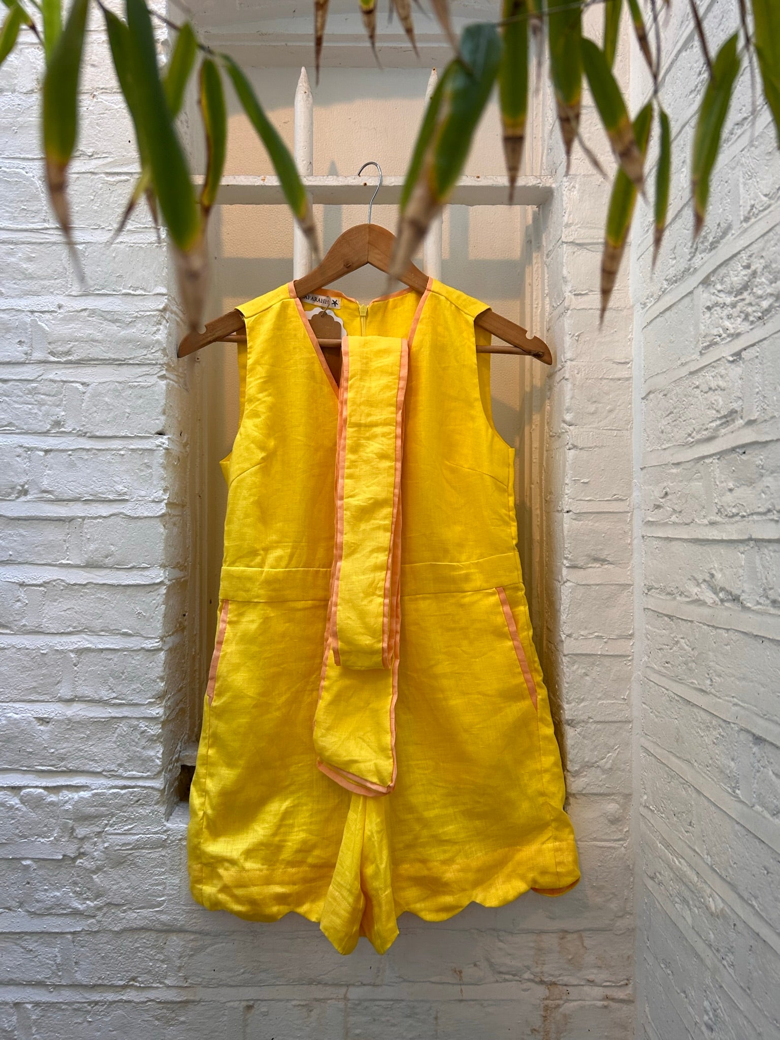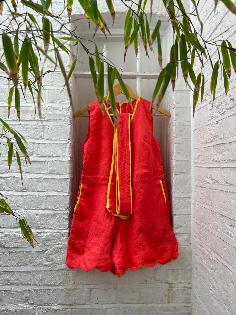 Our Kipiri playsuit is the low maintenance but chic look we all need. Its comfortable cut combined with its pockets make it great for an activity filled day – the scalloped hem is the perfect finishing detail. She comes with a belt for when you’re feeling fancy, but no naughty belt loops, so both ways look equally as good.