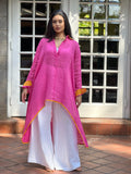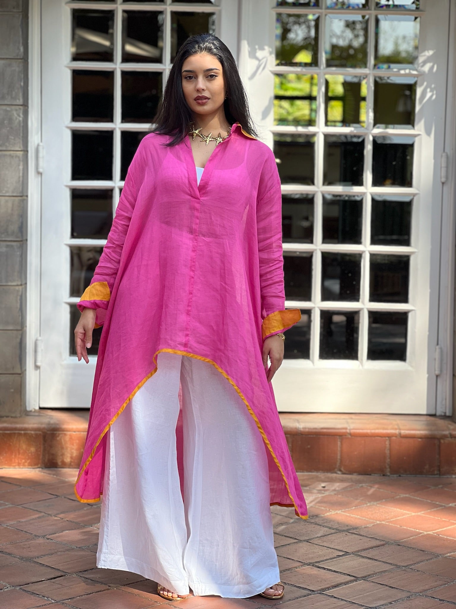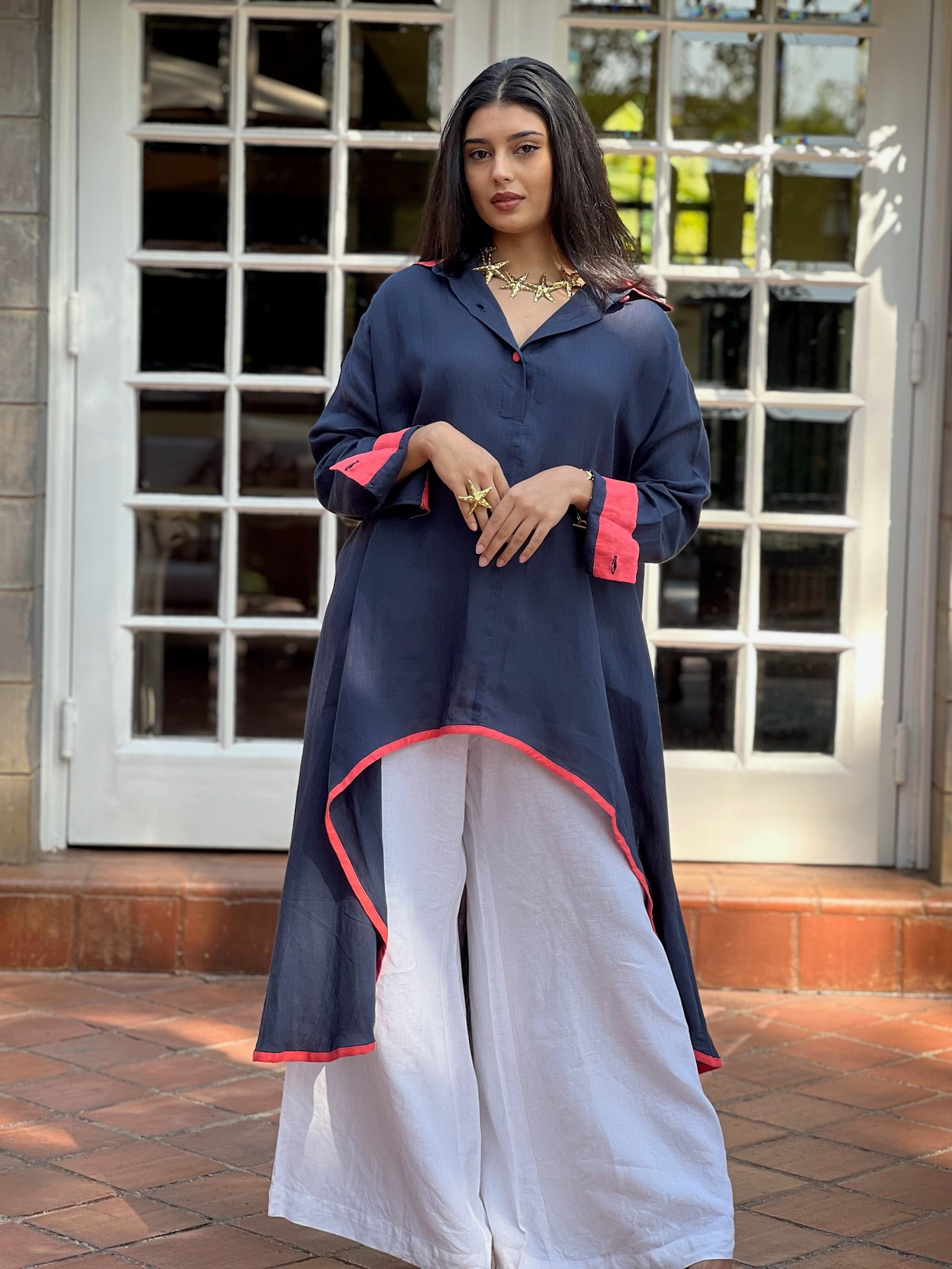 For a statement look you will want our Magadi shirt. The high low cut gives the front a glamorous waterfall like silhouette and the fabric at the back trails behind you as you move. The top is great for all occasions: lunch with the girls, an Ibiza beach club or something a bit more formal.