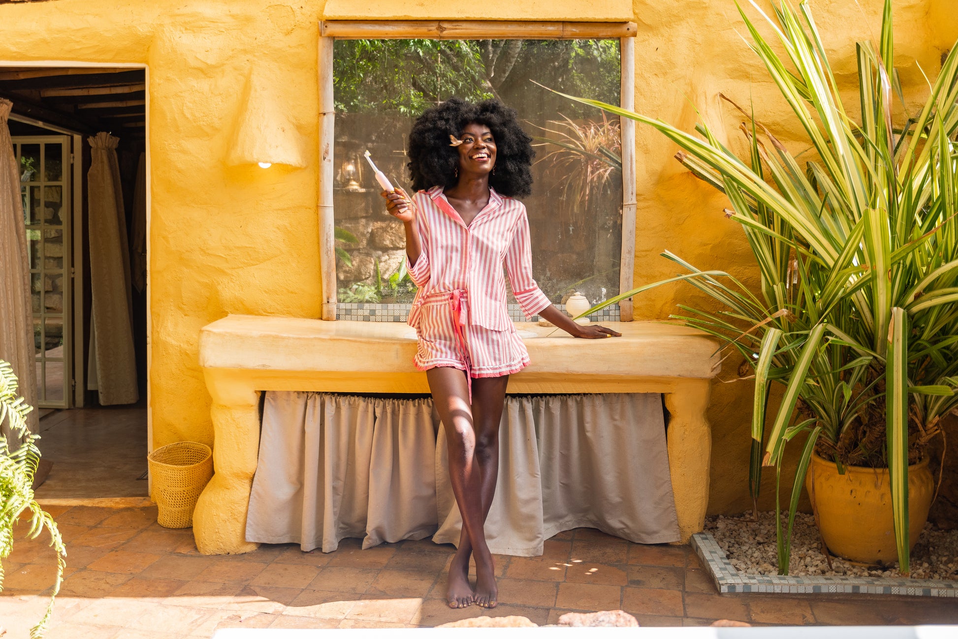 Our Salama pyjama shirt has been inspired by a sleep-chic look, but we think it’s too pretty to stay in bed. We love to pair it with our Salama pyjama shorts, a cute bag and some sandals when on holiday, or tied up with jeans in the city. If you do want her for snoozing, then add her to the bag; she’s comfy, cute and perfect for a girly weekend away.