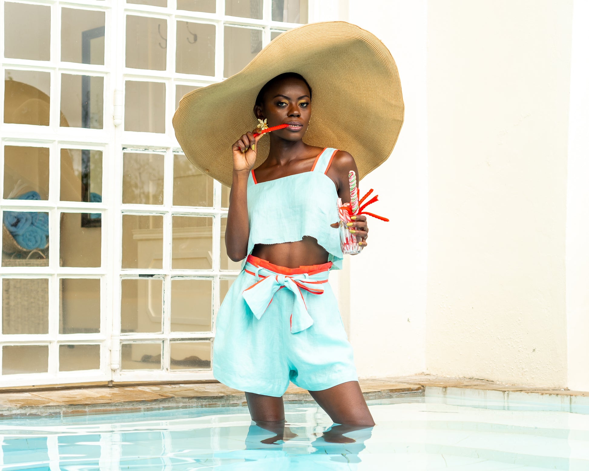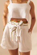 We love high waisted everything including our high waisted shorts. They obviously come with pockets because what’s a girl in the 21st century to do without pockets? The shorts also have a belt that can be tied in a big statement bow. These look great with our Shanzu crop top, but if you don’t love a co-ord as much as we do, or fancy mixing things up, a plain camisole or shirt will look gorgeous too.