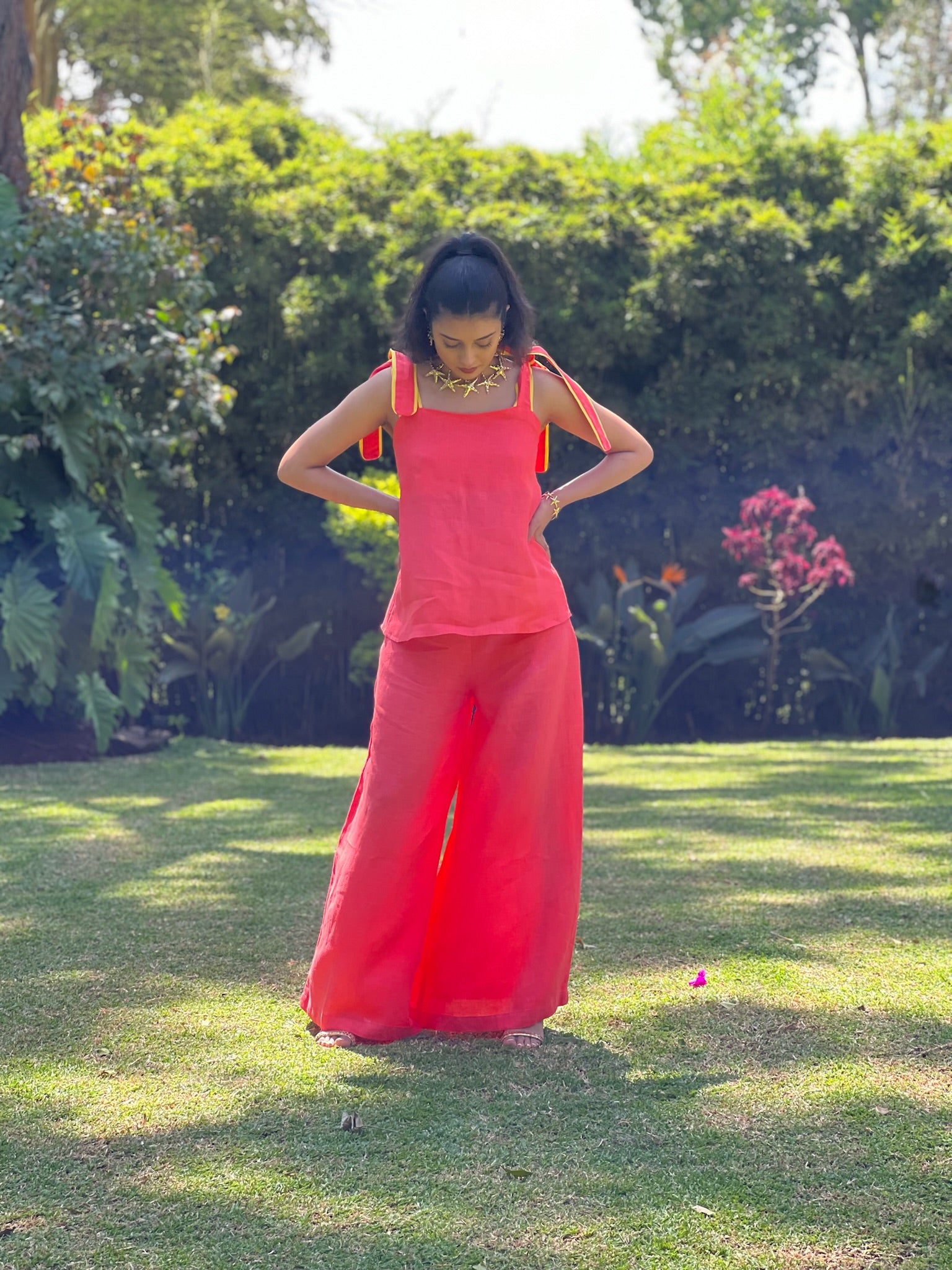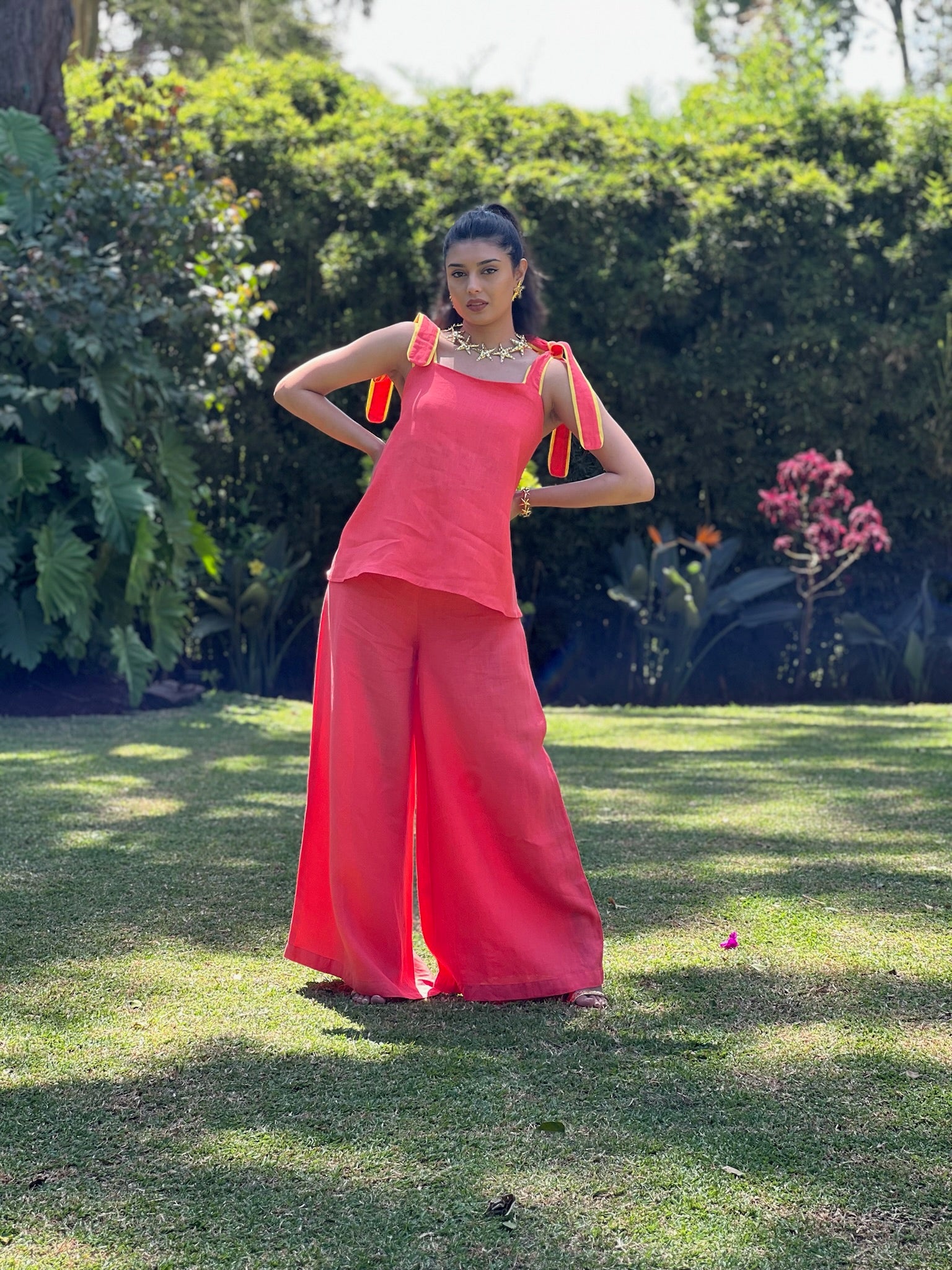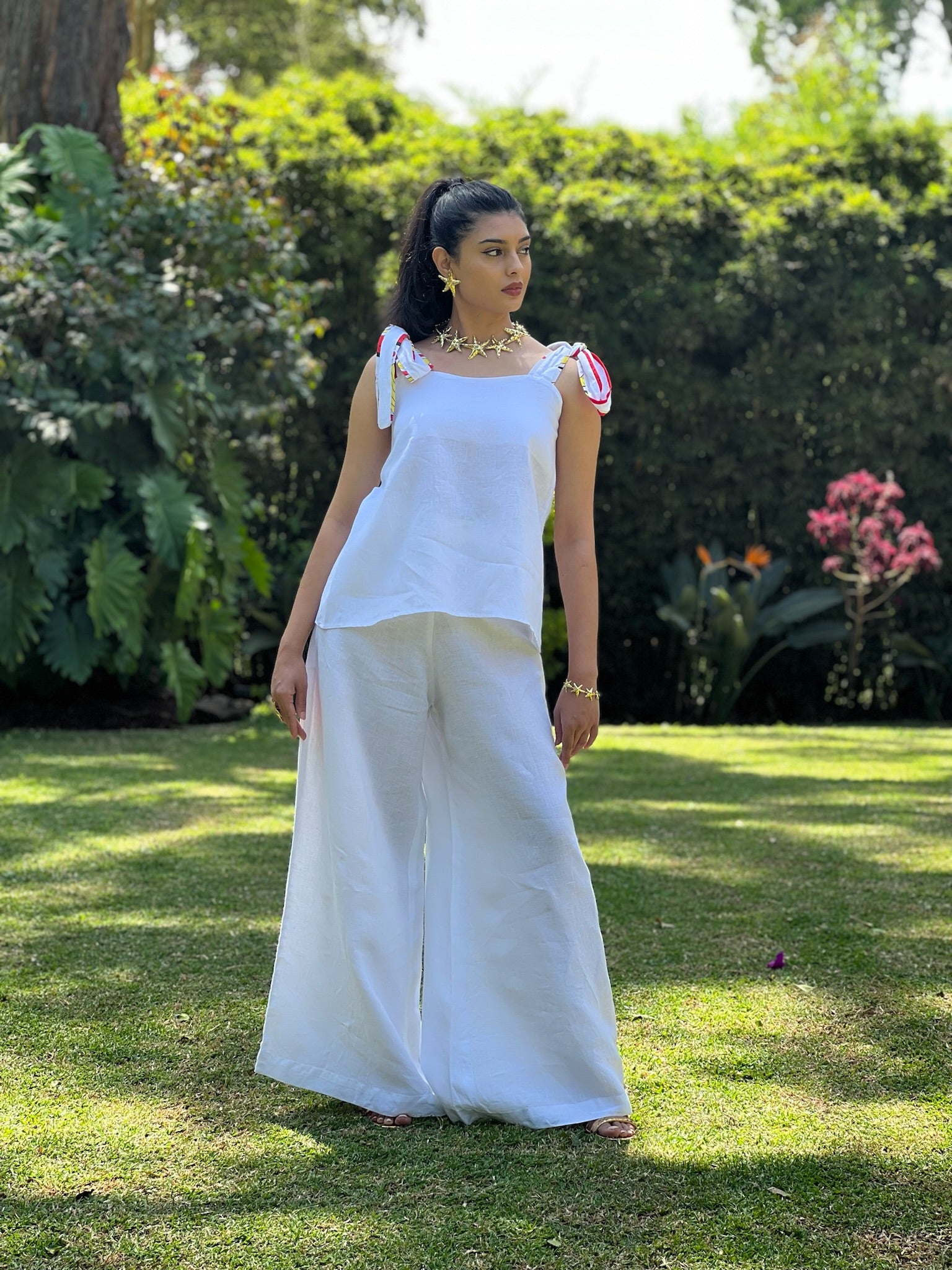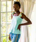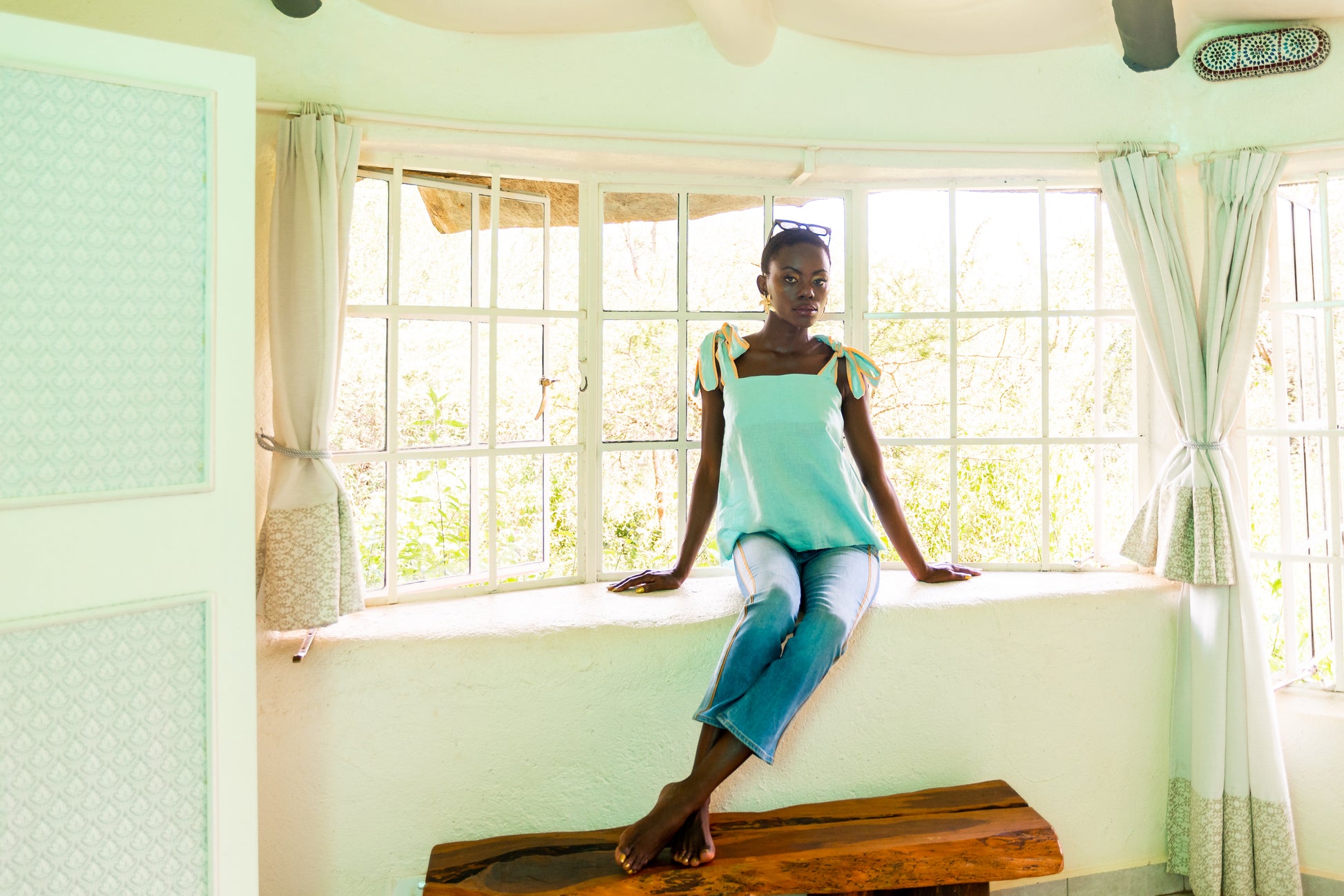Another wardrobe staple is our Shanzu camisole style top. But we like to be a little bit fabulous wherever we can be, so the added detail on the tie up straps and the slight slit at the back promise a bit more heat than the ordinary camisole.